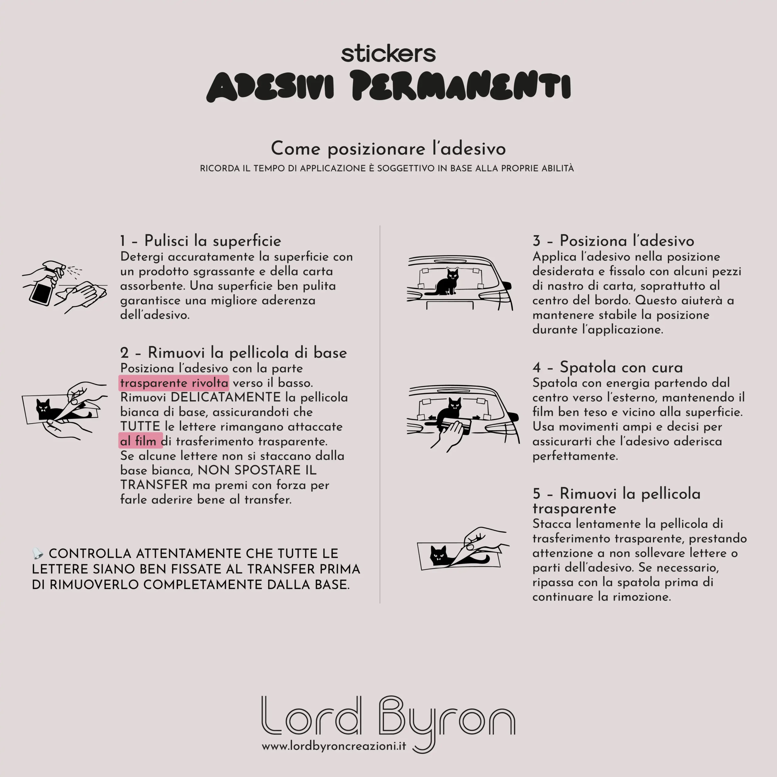 Questo adesivo prespaziato per auto e scooter è pensato per chi ama i gatti e vuole comunicarlo con ironia e personalità. Un messaggio chiaro, divertente e immediato che cattura l’attenzione di chi ti segue nel traffico.