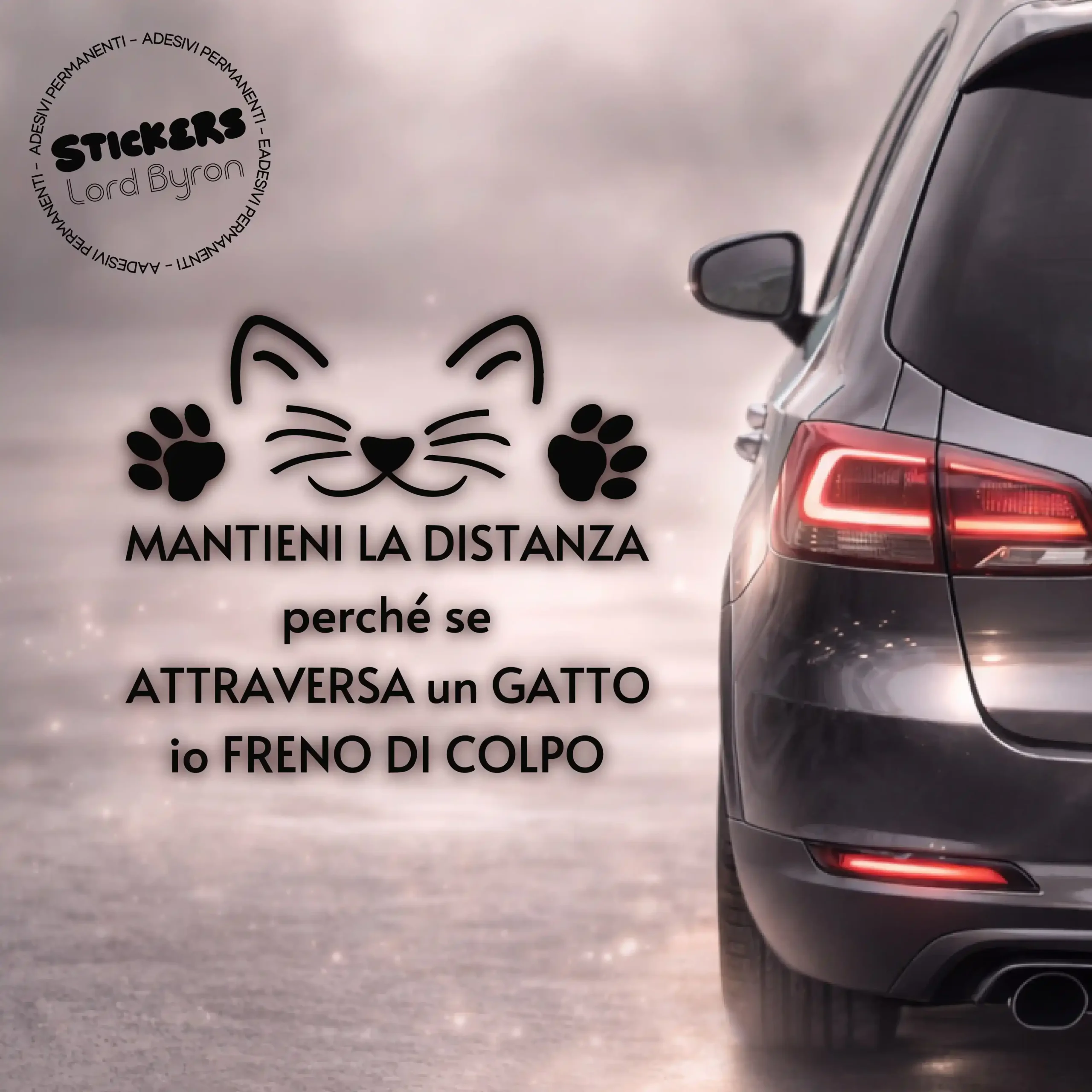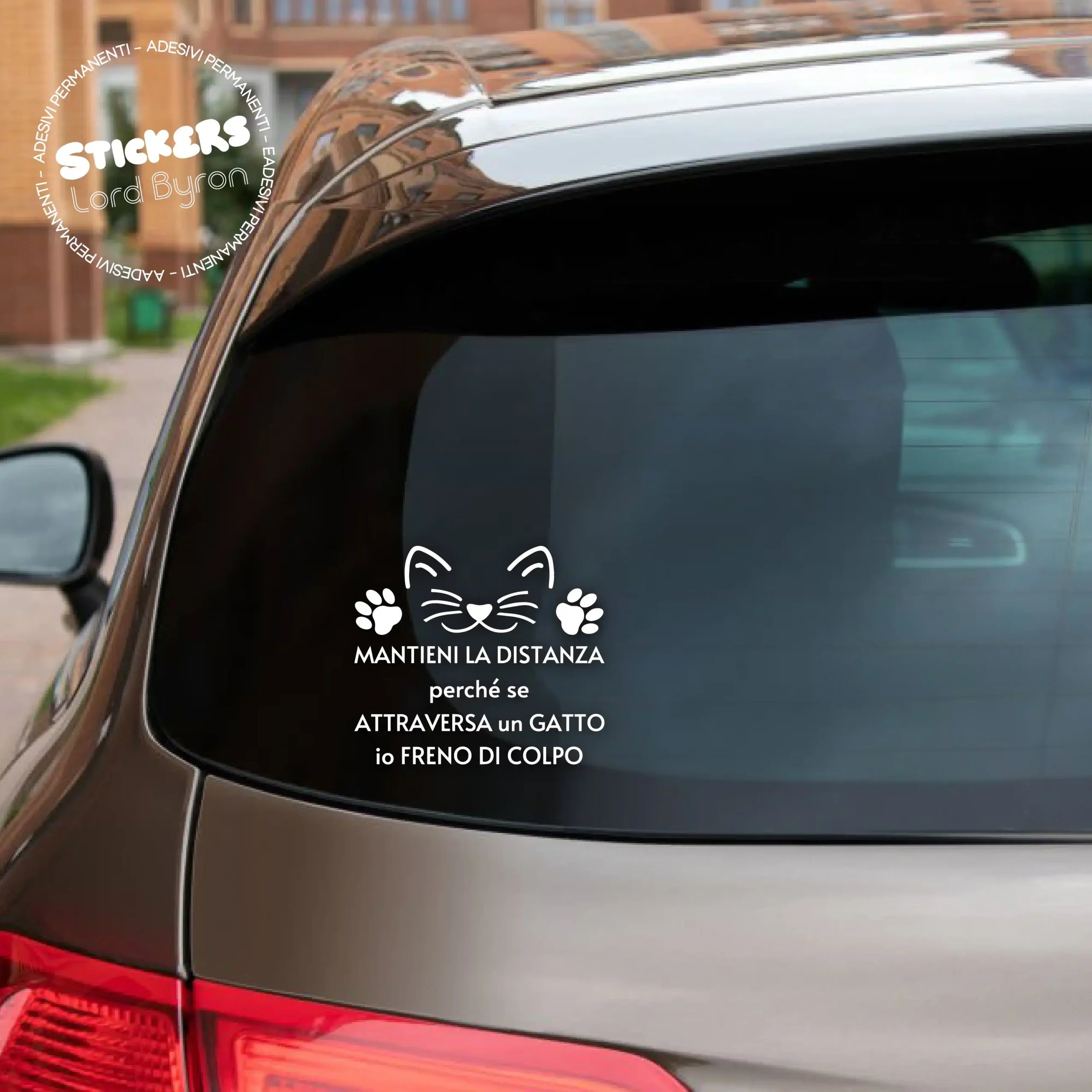 Adesivo Auto Prespaziato “Mantieni la Distanza perchè se attraversa un gatto io Freno di Colpo”
