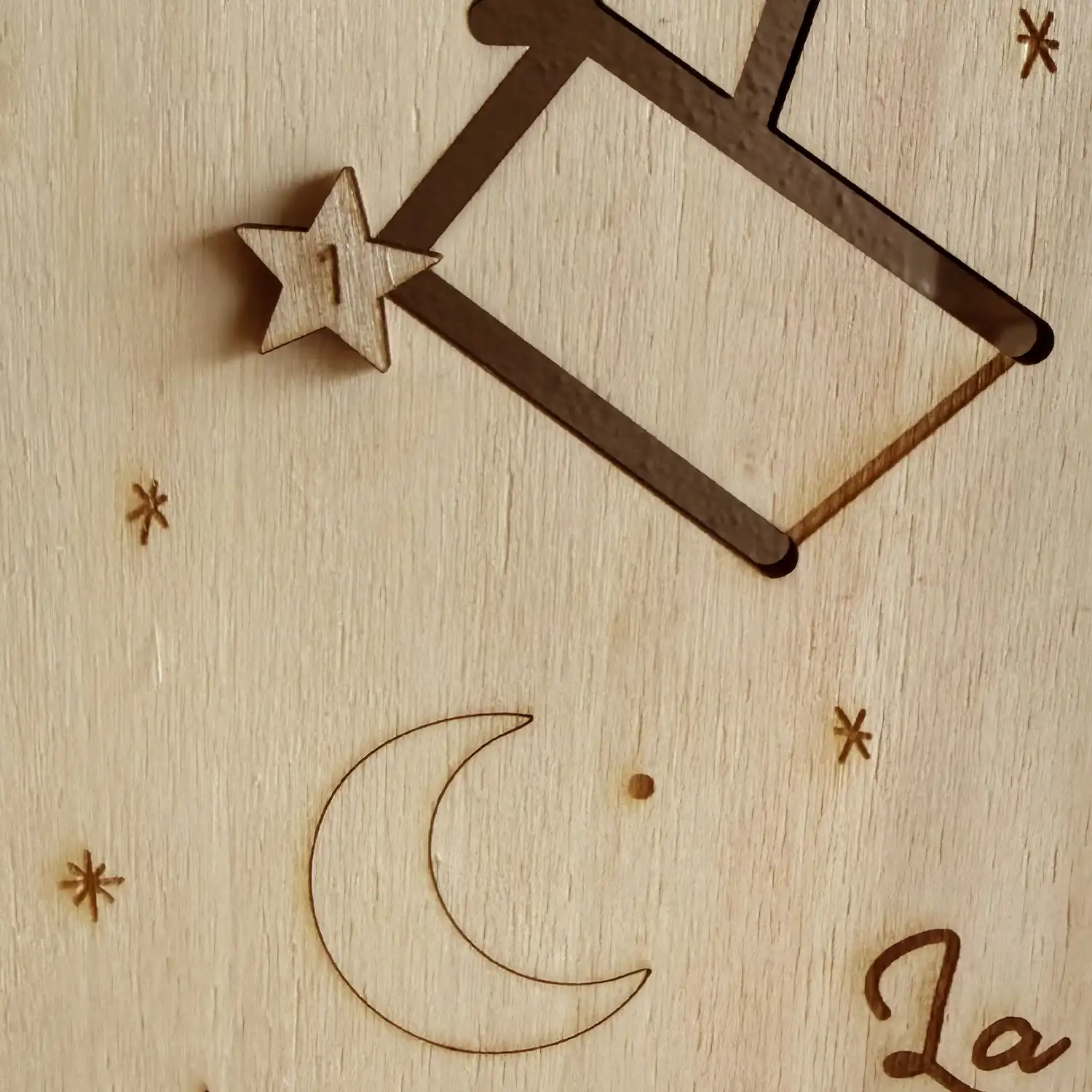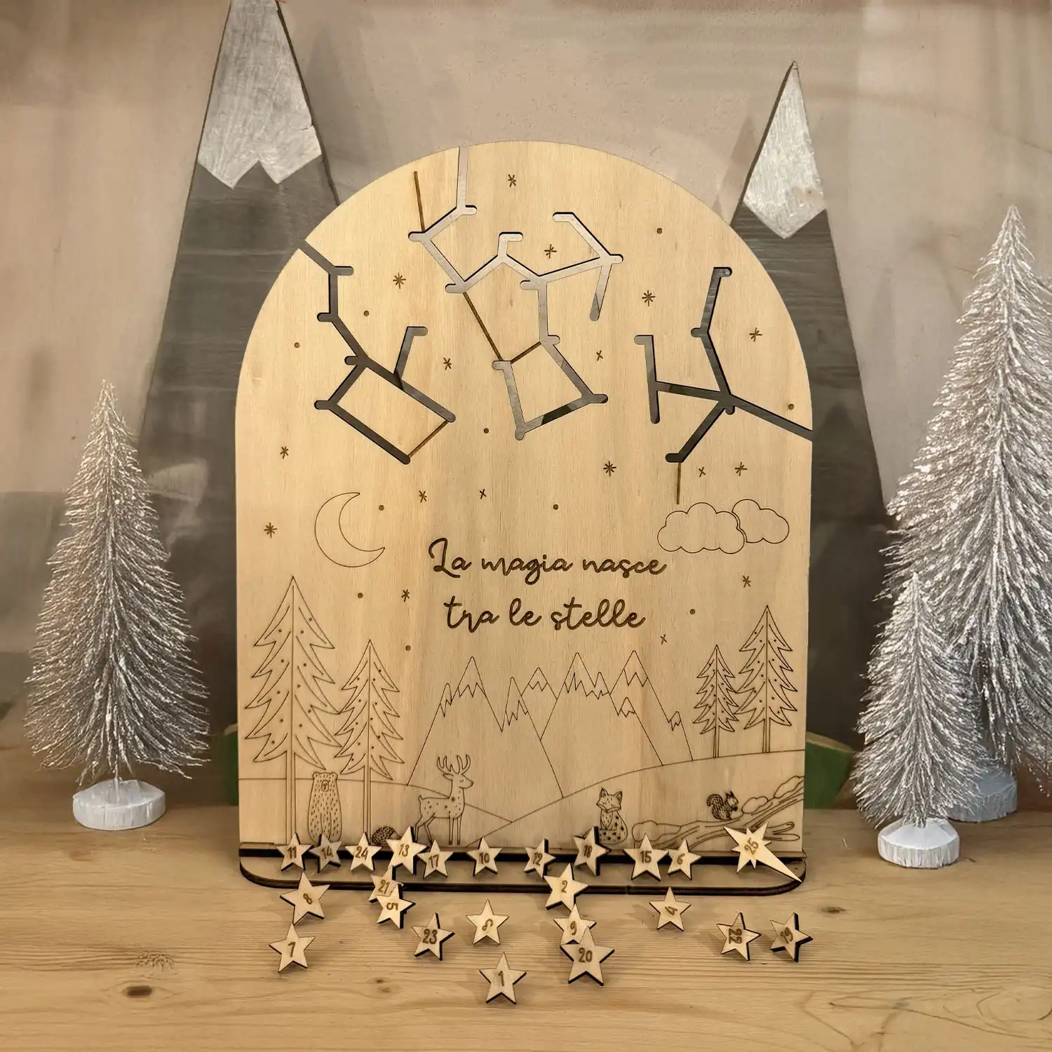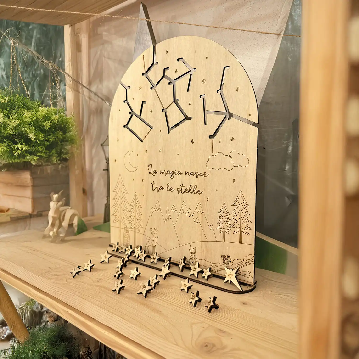 Un calendario dell’Avvento poetico e ricco di atmosfera: ogni giorno una stella si aggiunge al cielo, fino all’arrivo della stella cometa il 25 dicembre. Realizzato in legno e materiali ecologici, è un oggetto decorativo unico per vivere la magia del Natale.