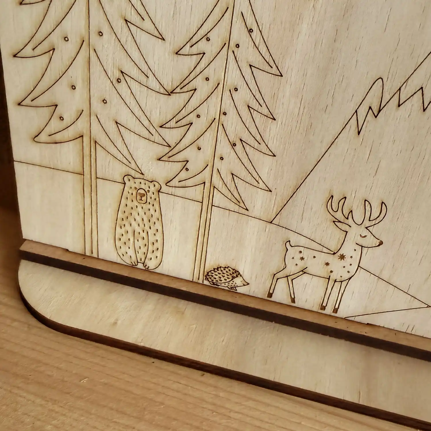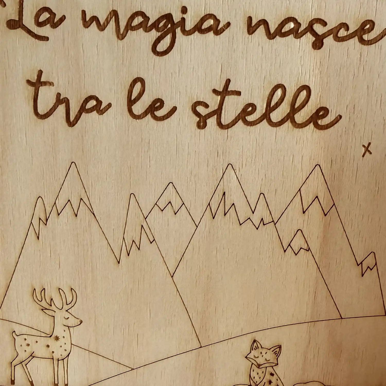 Il calendario dell’Avvento “La magia nasce tra le stelle” ti porta nel cuore di una foresta incantata, dove gli amici del bosco osservano un cielo che si illumina un po’ di più ogni giorno.
