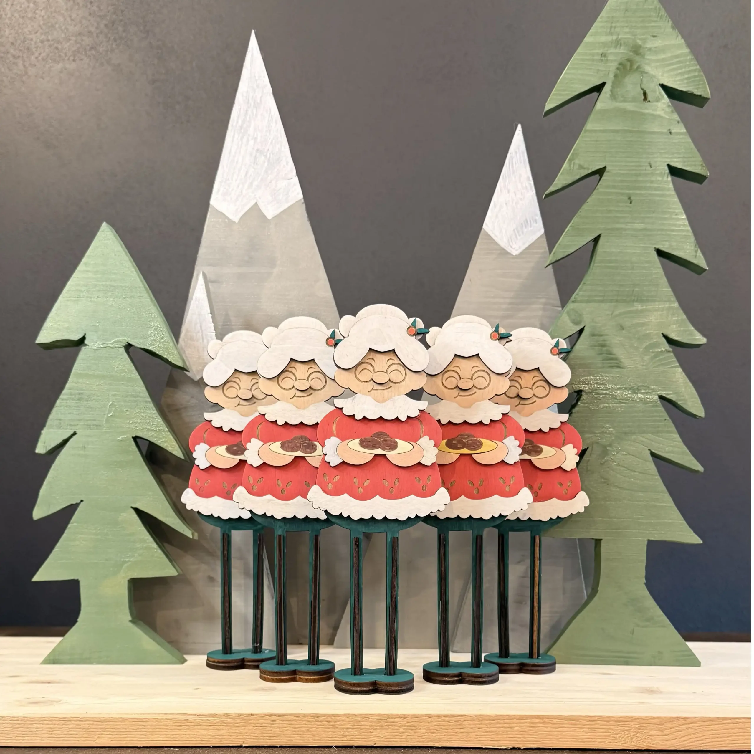 Questo personaggio, realizzato in legno e dipinto interamente a mano, rappresenta la magia familiare delle feste: colori caldi, linee morbide, dettagli che parlano di cura e tradizione.